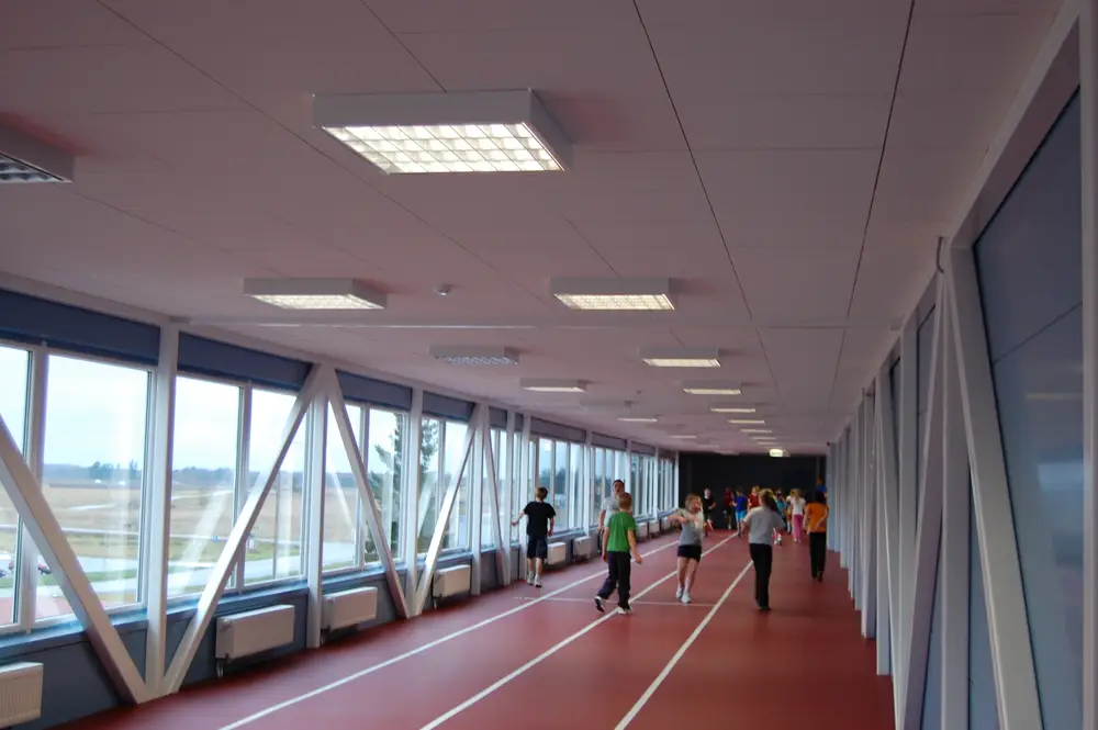 Jooksugalerii ühendab koolimaja spordihoonega. Galeriis on 2-e rajaga 60-meetri jooksurada
